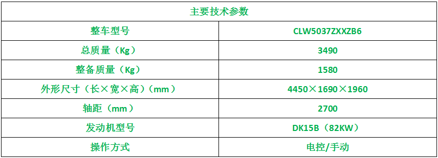 上装配置:可配3方或4方垃圾箱,大臂双缸举升,强度合金钢一体式主勾臂,加强型副梁,铸钢尾托轮,电控液压操控装置,上装最大提升能力1500KG,液压完成上箱+下箱+锁紧+自卸等作业,实现一车配多箱的循环转运。