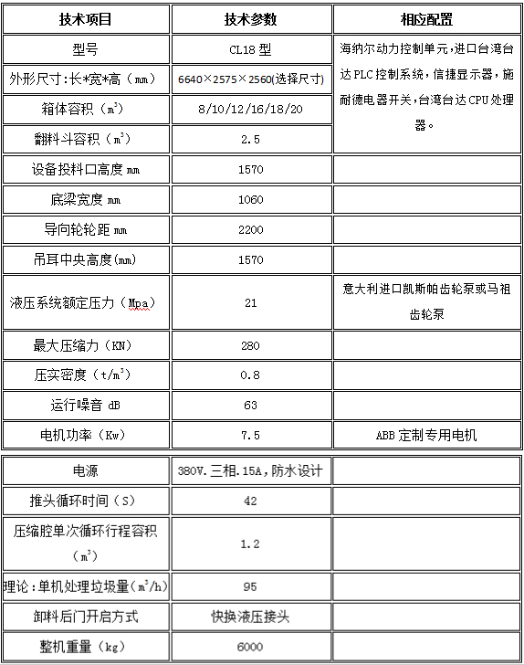 3、动力控制单元:动力及控制系统,驱动压缩头将垃圾压入箱体;