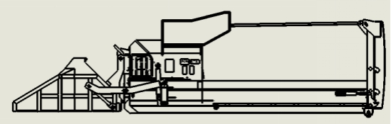 1、翻料斗:垃圾的装填容器3m3,可将翻料斗内的垃圾倾倒入压缩腔的机构;