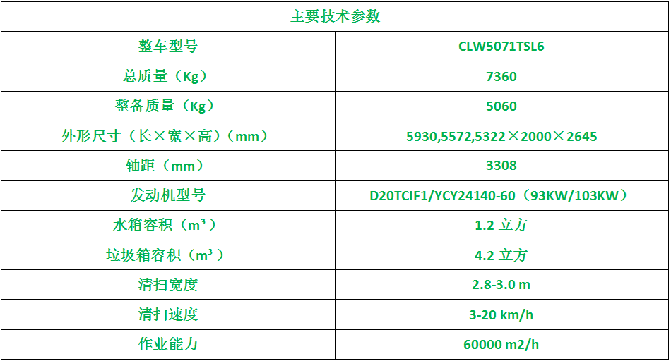 上装配置:带扫盘4把;扫盘转速独立3档调速;江铃64kW增压副发动机;大力马达;施耐德控件开关;台湾液压阀;皖液齿轮泵;新西山水泵;免维护自分离式离合器;免维护风机;不锈钢水箱;不锈钢垃圾箱;尾部LED箭头灯;带手动应急泵;刷臂转动机构使用高新耐磨工程隔套,免打黄油;精密冷弯无缝液压油管。
