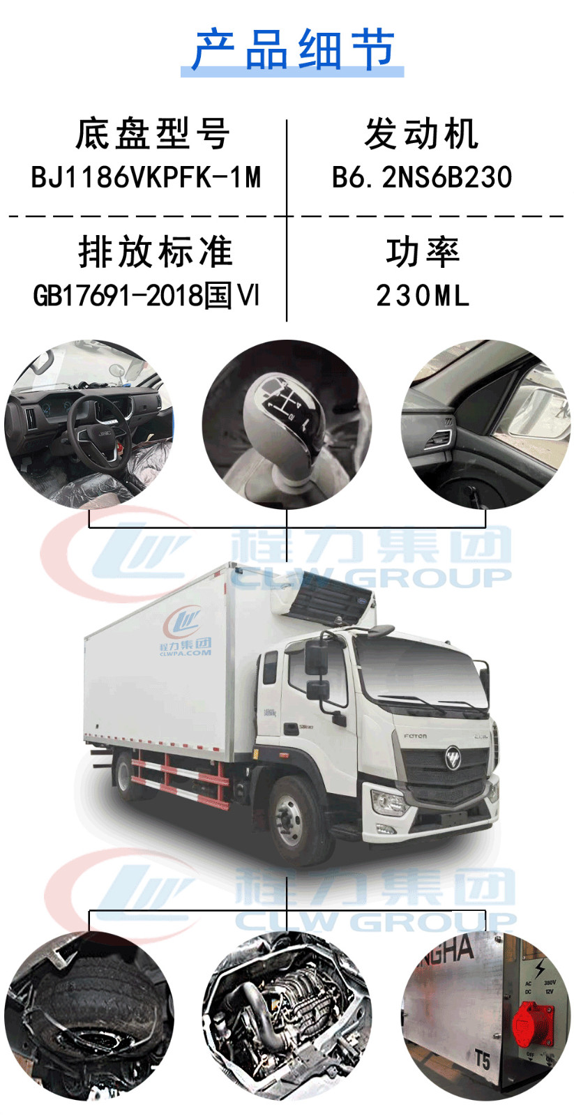 | 其他 | ABS系统型号/生产企业对应关系:ABS-E/威伯科汽车控制系统(中国)有限公司,CM4XL-4S/4M/广州瑞立科密汽车电子股份有限公司,3550D-1010/东科克诺尔商用车制动系统(十堰)有限公司.安装符合规定的具有卫星定位功能的行驶记录仪.货厢顶部封闭,不可开启.选装导流罩,雾灯可取消,选装液压尾板,液压尾板质量550kg,收起时水平长度为300mm.选装货厢开门形式.侧防护材料材质:热板A-3.0-GB/T 709.后防护材料材质:510L-6.0-GB/T 709.连接方式:螺栓连接;后部防护装置的断面尺寸:120mm*60mm,离地高度:465mm.F4.5NS6B220发动机对应油耗值:23.1L/100km.货厢内尺长7000mm只5150mm轴距选装.选装限速装置,限速89km/h.B6.2NS6B230发动机对应油耗值:23.6L/100km.F4.5NS6B190发动机对应油耗值:23.1L/100km.选装高顶驾驶室.选装前围 | ||