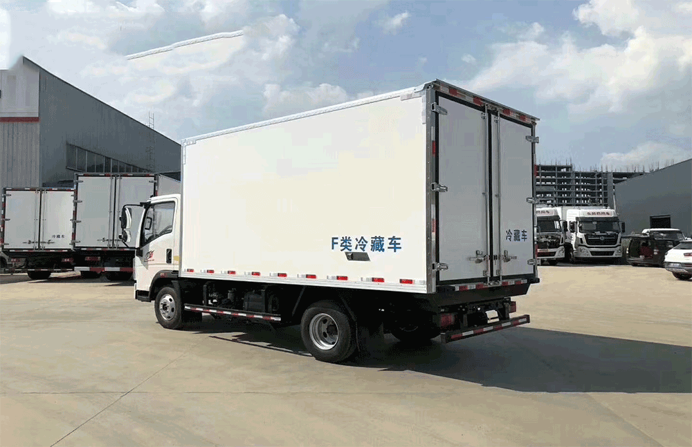 飓丰冷藏车箱体是采用先进的木质工艺、断桥隔热技术!箱板是由镀锌管骨架加上环保防水木板用螺丝连接,中间8CM保温板填充、内外2.0玻璃钢,高强度粘合剂、热压成型,外框采用304不锈钢、加厚铝型材包边、27不锈钢大门锁、配件,箱体拼接出来不打胶无缝隙,降温速度快、散温慢、保温效果好,门带斜边,副梁是510大梁钢一次性折成,用压板锁紧,侧护网和后保险杠一次性成型,用螺丝锁紧。
