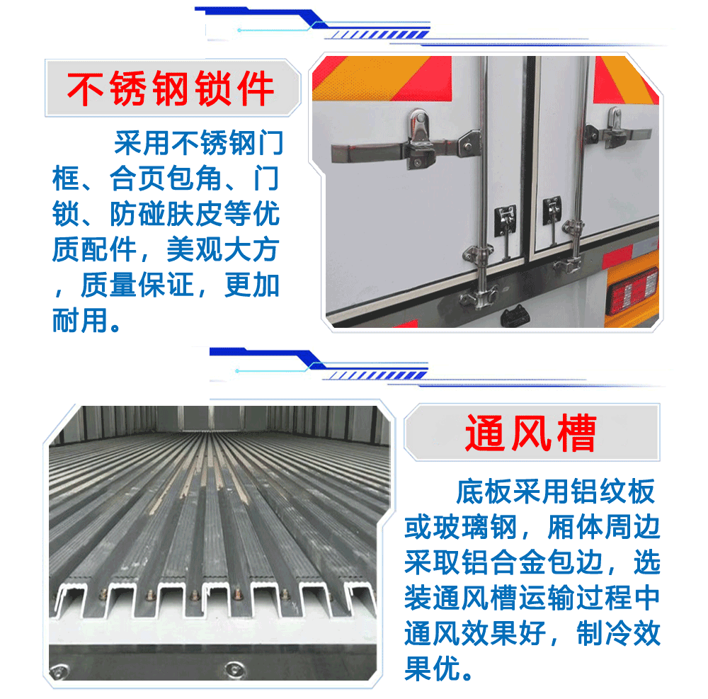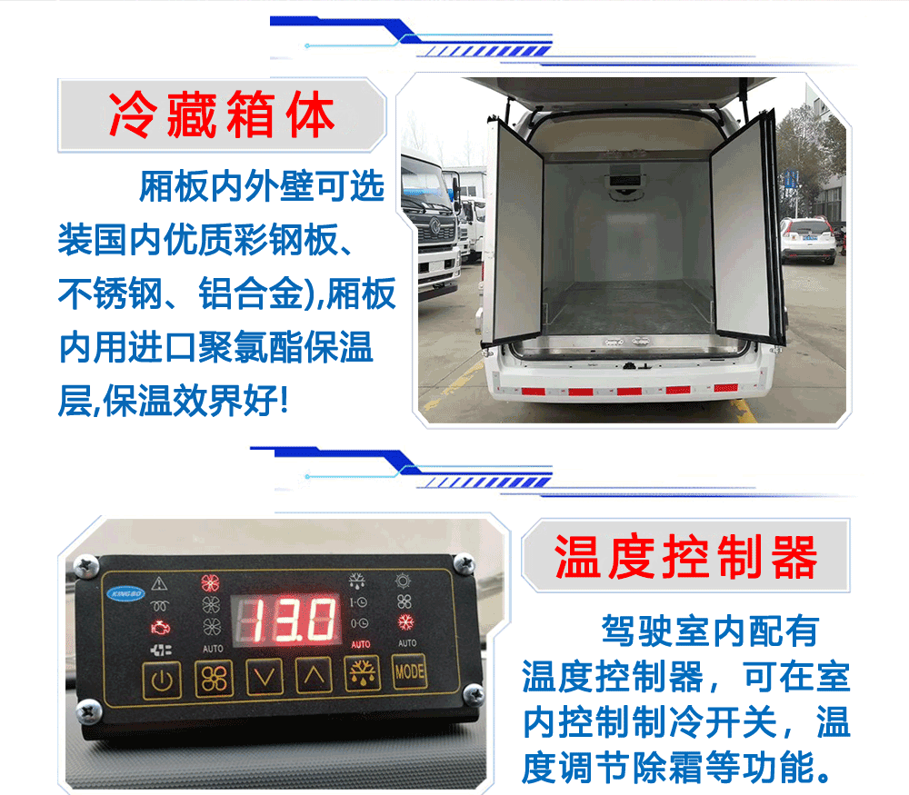 上装配置:箱体采用内外玻璃材料制作,中间夹层为8cm厚高密度环保保温板,用真空复合一次成型,表面光洁平整、强度高、使用寿命长,箱体边缘采用专用铝合金型材包边,门框门锁件为不锈钢材质,地板为铝合金花纹防滑板,箱体带LED照明灯,后双开门,侧单开门。
